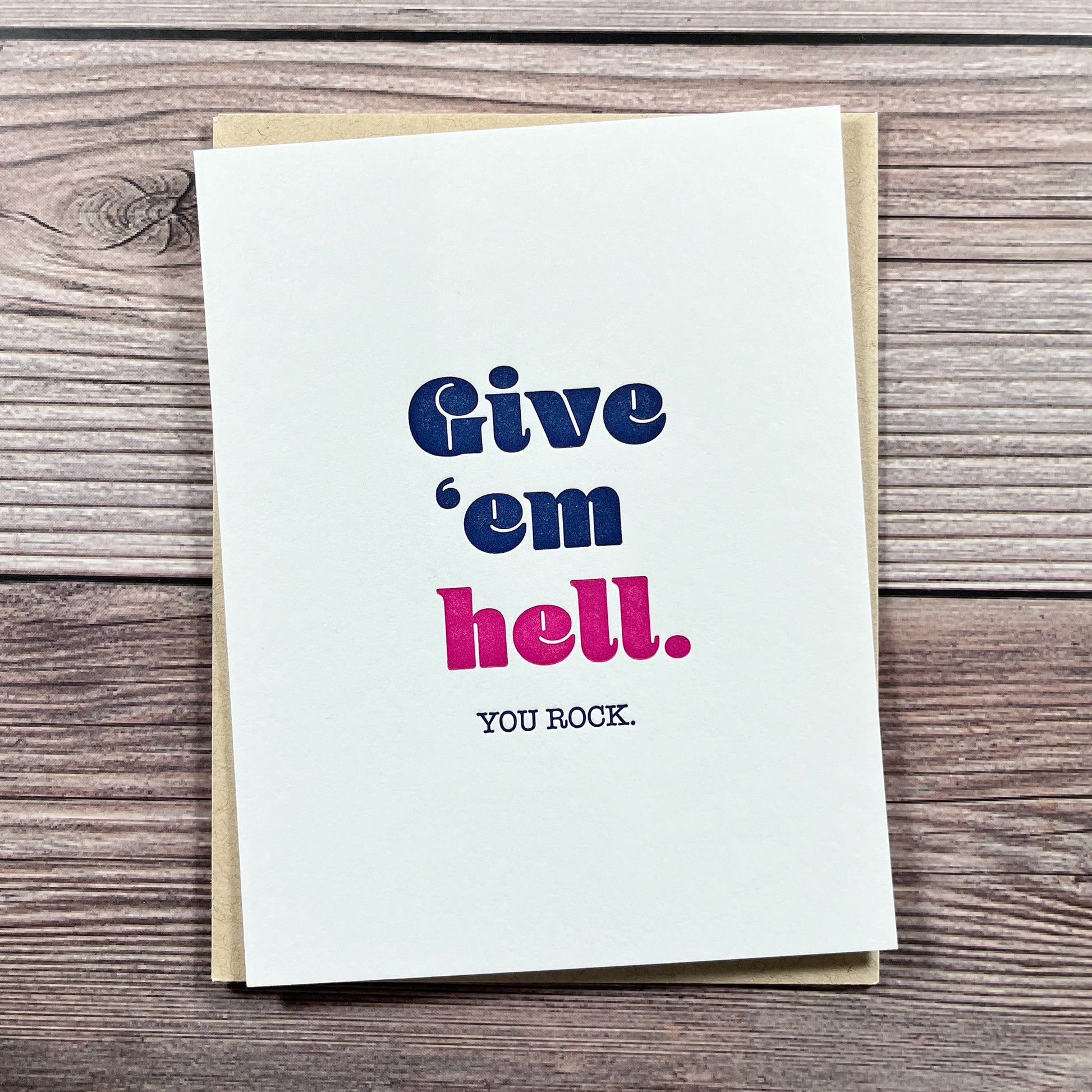 Greeting Card Message: Give 'Em Hell. You Rock.