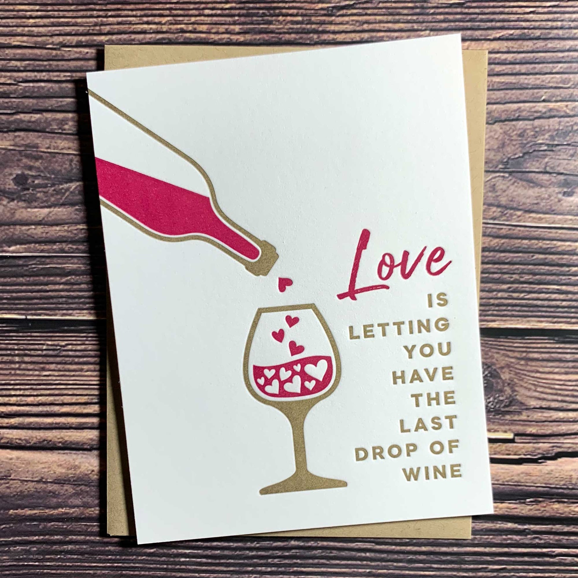 Greeting Card Message: Love is letting you have the last drop of wine.